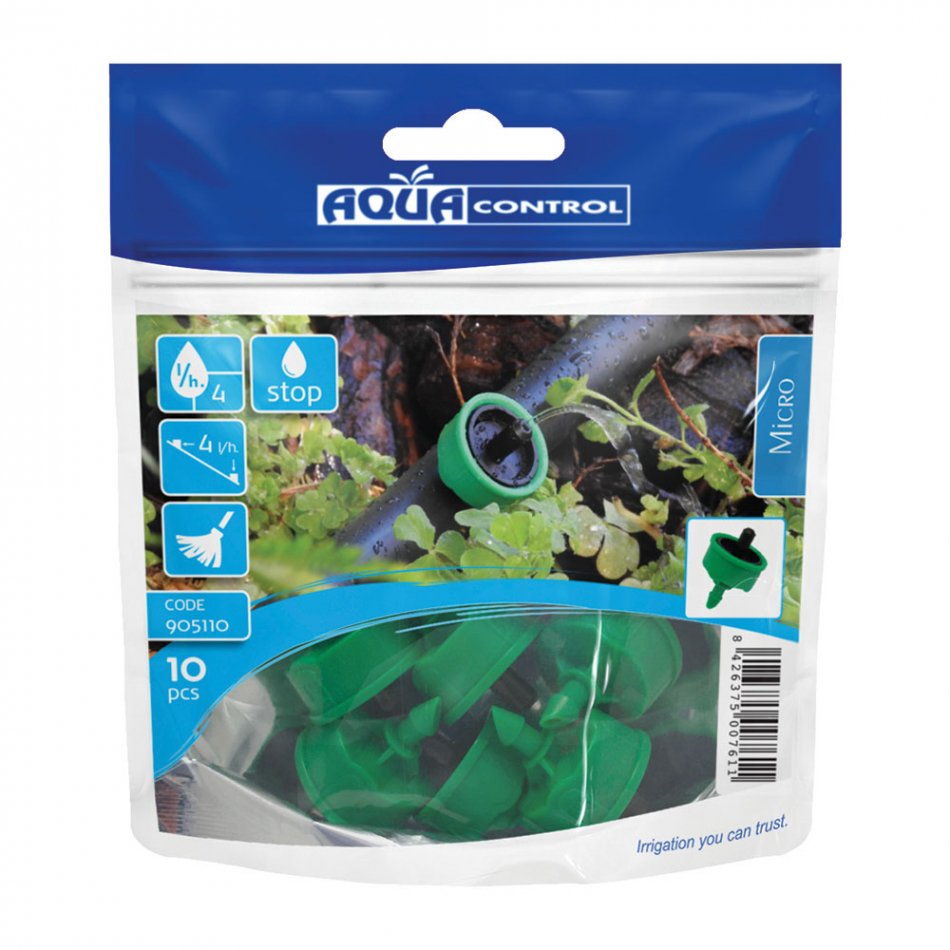 10 goteros stopper 4 l/h. autocompensado y autolimpiable antidrenante 905110 aqua control