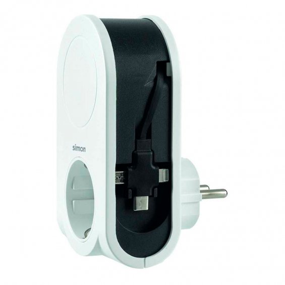 Adaptador 3 conectores usb + 1 usb a + 1 toma schuko 16a 250 v~ blanco 1 usb a + 3 clavijas usb (c, micro usb, lightning), cable enrollable 80 cm