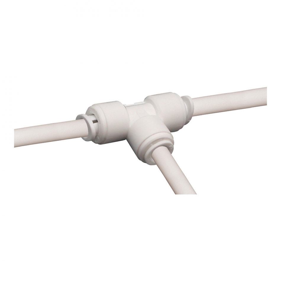 Adaptador "t" de distribución automática 1/4". material: polietileno. tratamiento anti uv