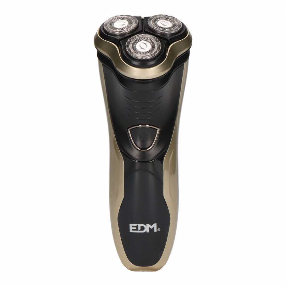 Afeitadora electrica recargable inalambrica. cuchillas auto-afiladas. cabezal triple individual flotante. accesorios: bolsa de viaje + cepillo de limpieza + cable de carga + 2 baterias de 100ma - 8h de carga - 45min de funcionamiento. indicador de carga led. lavable abriendo el cabezal de afeitado para enjuagarlo. incluye cortapatillas. dimensiones:5,7 x 7 x 15,5 cm (ancho/fondo/alto) 220-240v 50hz edm