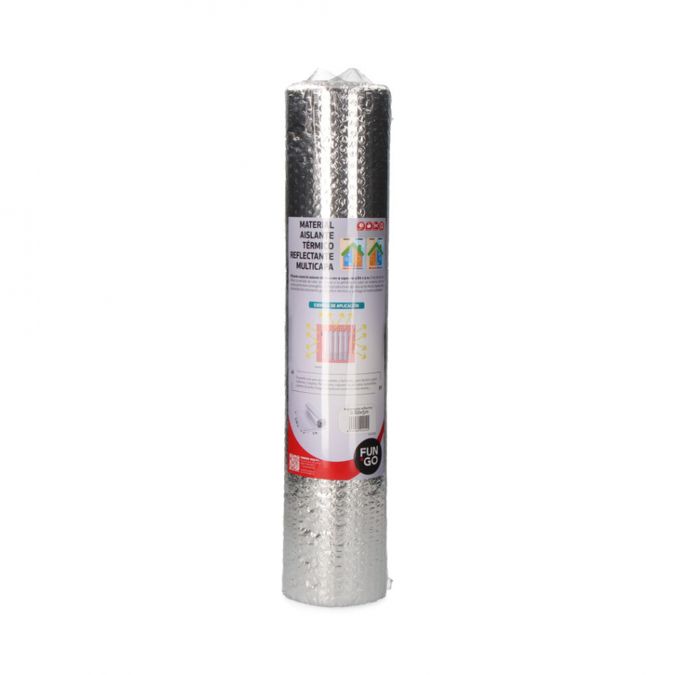 Aislamiento termico reflectante multicapa 0,6x5m. evita de forma eficaz la entrada de calor en verano y la perdida de calor en invierno con un consecuente ahorro energético. este producto es de colocación fácil y rápida, alta durabilidad del aislamiento, gran confort térmico y protege el medio ambiente. se puede usar para aislar paredes y fachadas, para techos o para cubiertas y tejados. radiadores, cajones de persiana, buhardillas, casetas de jardin, bungalow tanto en invierno como verano... fun and go.