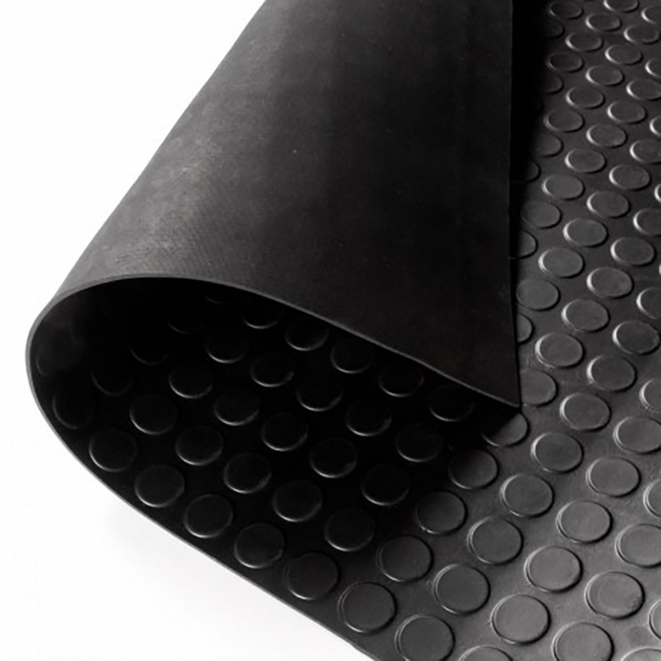 Rollo de suelo caucho-goma grosor 3 mm - ancho 1 x 10 m largo. composición 100% goma caucho. color negro diseño círculos. uso doméstico/profesional.