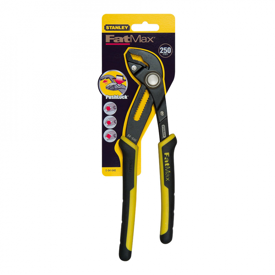 Alicate con cremallera fatmax® 250mm. geometría de las mandíbulas optimizada para tener varias posiciones de agarre. botón de ajuste pushlock. asas bimateria ergonómicas. construcción por embutición. cromo vanadio de alta calidad. mandíbulas endurecidas por inducción. 17 posiciones de bloqueo. stanley