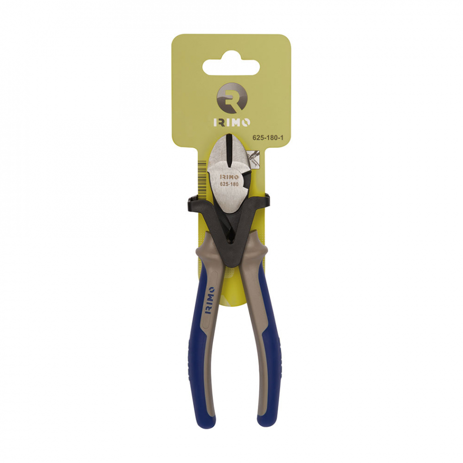 Alicate cortante reforzado, 180mm 625-180-1. alicates de corte diagonal heavy-duty". con filo de corte templado por inducción para alambres blandos y duros. mangos: bi-materiales y de agarre suave que proporcionan comodidad y control. acabado: pulido. material: aleación de acero de alto rendimiento. dureza máx. del filo de corte: 60-65hrc. norma: iso5749. capacidad de corte máx.: 1- alambre de cobre, 2- alambre de dureza media."