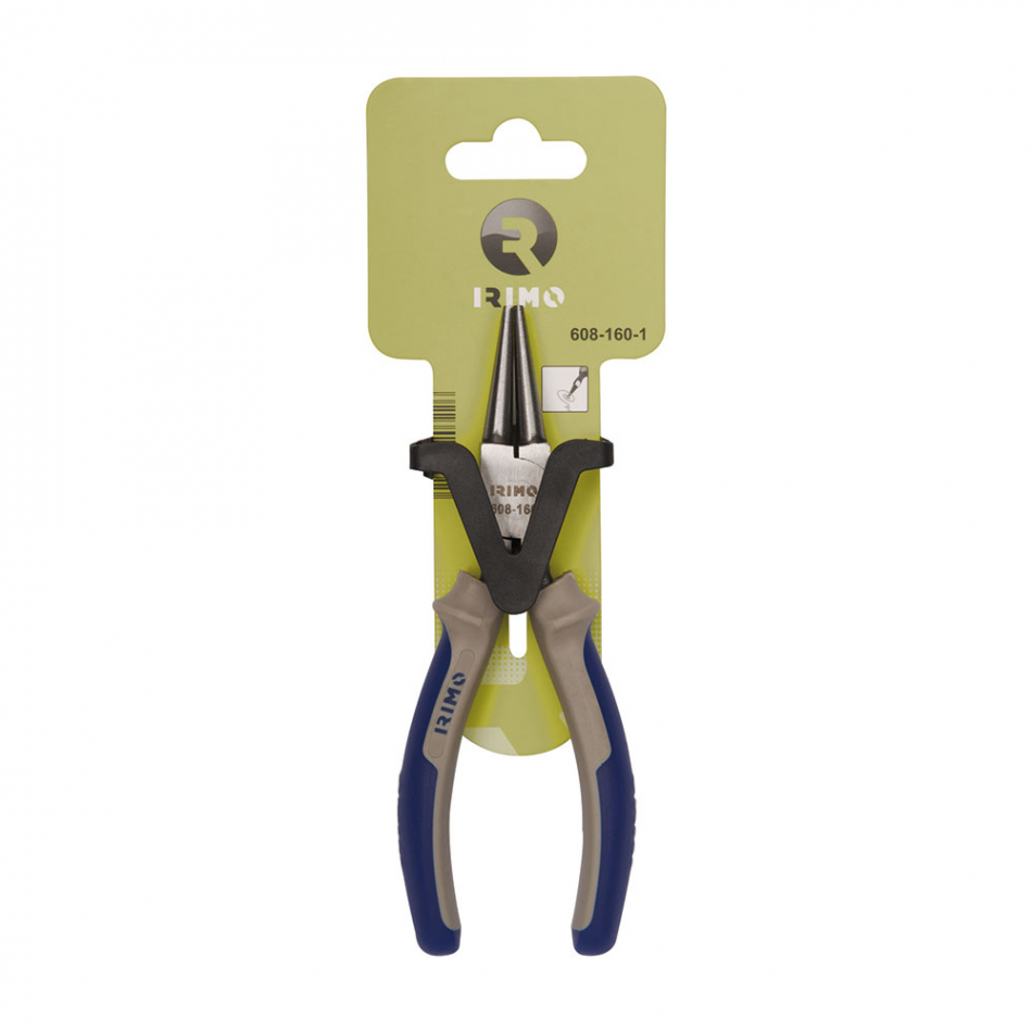 Alicate de boca redonda, 158mm 608-160-1. alicates boca redonda. mangos: bi-materiales y de agarre suave que proporcionan comodidad y control. acabado: pulido. material: aleación de acero de alto rendimiento. dureza: 45-50hrc. norma: iso5745.