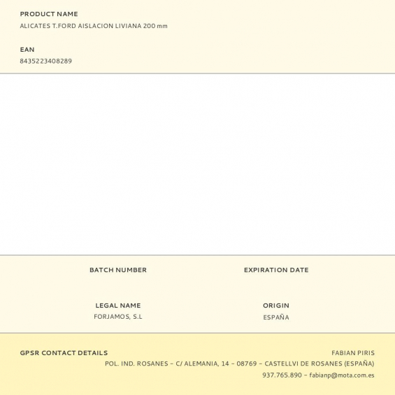 Alicate t.ford aislacion liviana 200mm. material: acero al carbono. dos posiciones ajustables. mangos con aislación plastica sumergida. terminación niquelada. presentación en blister. q608 mota