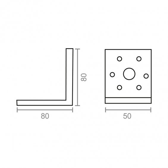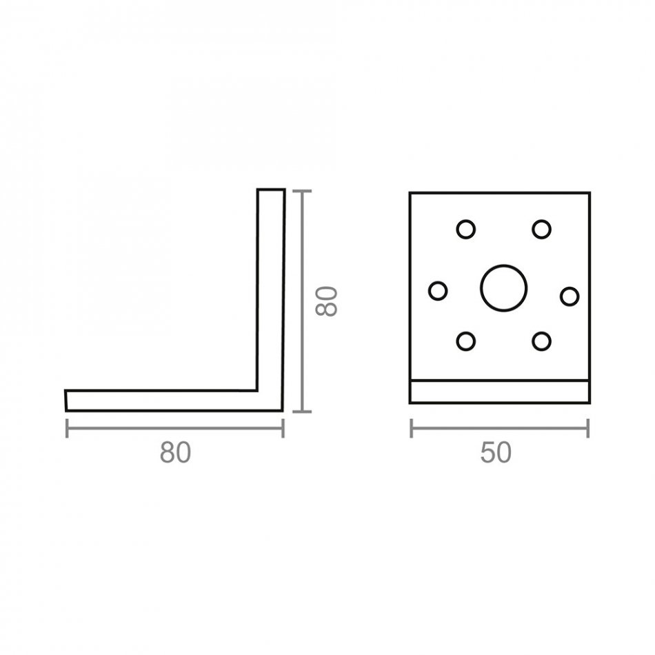Ángulo pesante en acero de 80 x 80 x 50 mm. espesor de 2 mm. diámetro de los agujeros para los tornillos 5 mm. acabado zincado