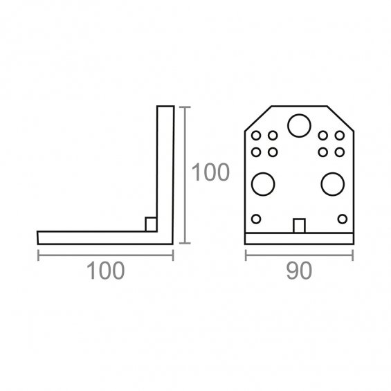 Ángulo pesante en acero de 100 x 100 x 90 mm. espesor de 2,5 mm. acabado zincado