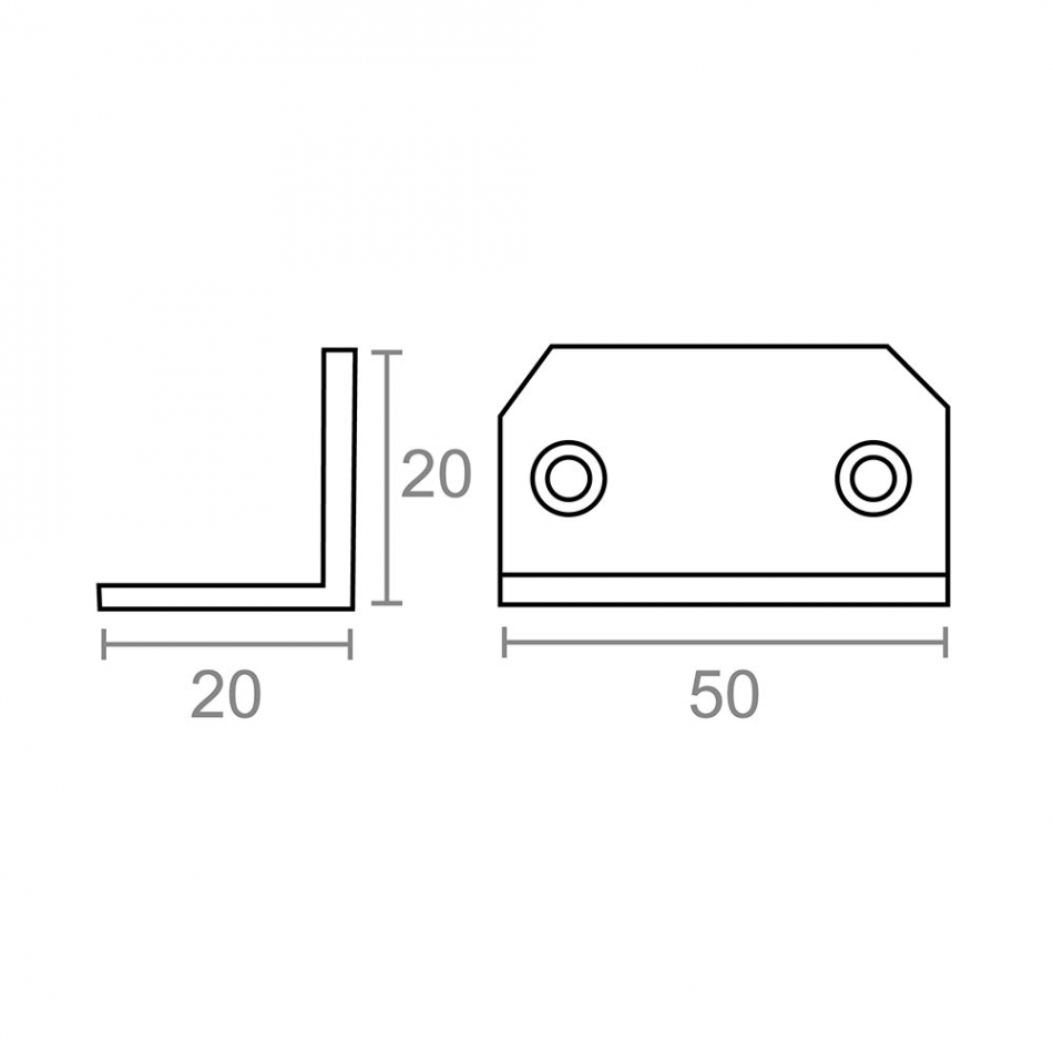 Ángulo de refuerzo en acero de 20 x 20 x 50 mm. espesor de 1 mm. acabado zincado