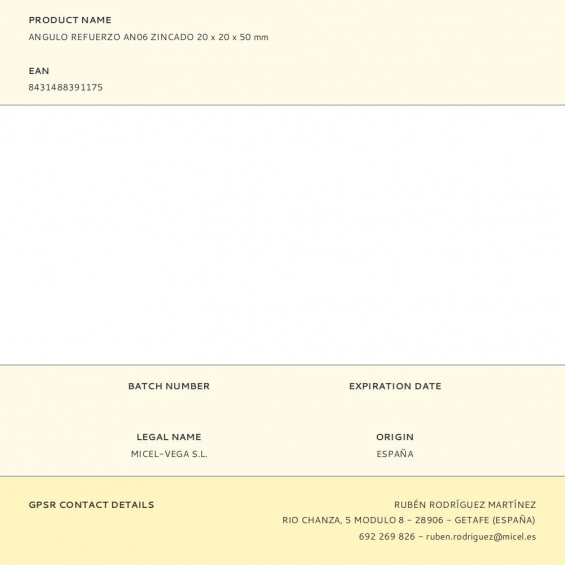Angulo refuerzo an06 zincado 20 x 20 x 50 mm