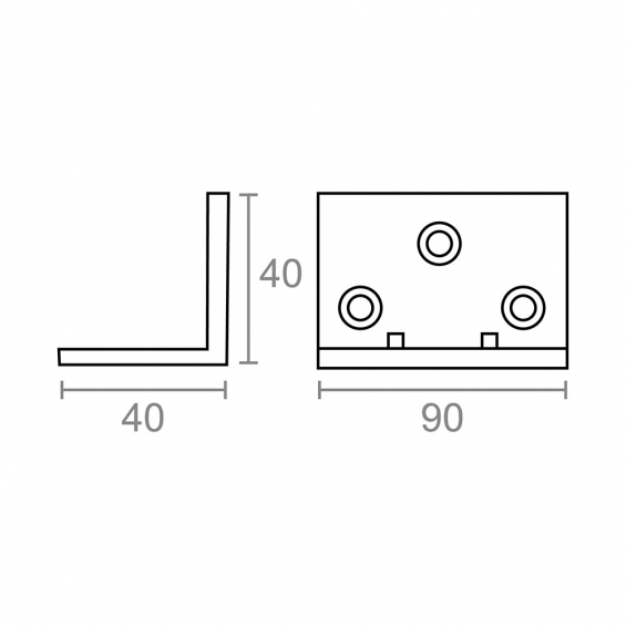 Ángulo de refuerzo en acero de 40 x 40 x 90 mm. espesor de 1 mm. acabado zincado