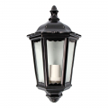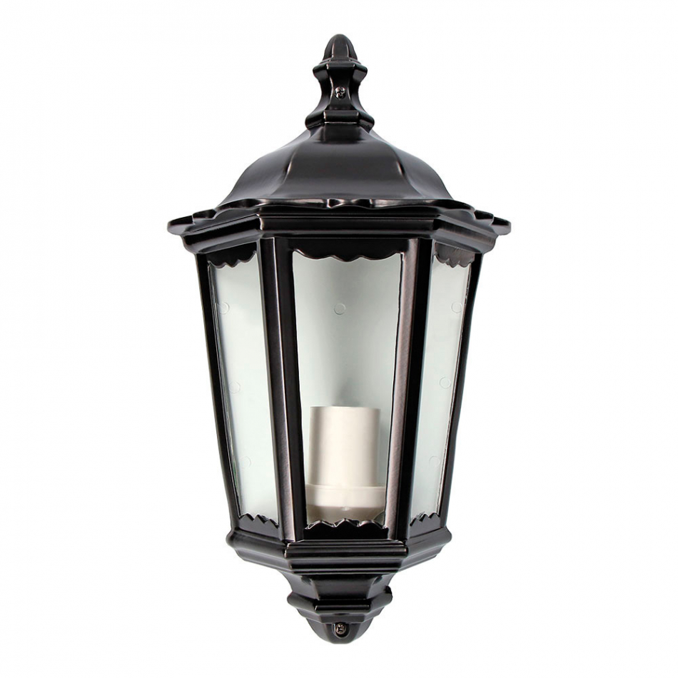 Aplique de aluminio y cristal para pared color negro. modelo milan. e27, potencia máxima: 100w. (bombilla no incluida), ip44, tensión: 220-240v, medida: 25x12x43cm