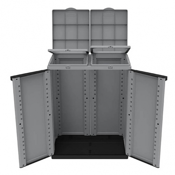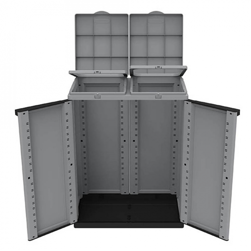 Armario ecoline 2 68x39x88,7cm. 2 puertas, color gris, apertura frontal y superior, anilla de sujeción para bolsas, apto para bolsas de hasta 110l, posibilidad de cierre con candado.