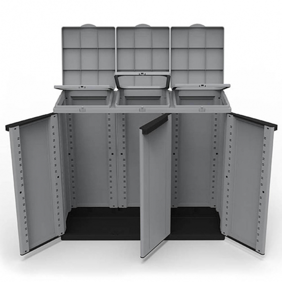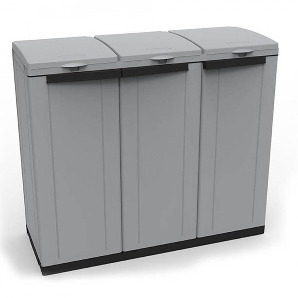 Armario ecoline 3 102x39x88,7cm. 3 puertas, color gris, apertura frontal y superior, anilla sujeción para bolsas, apto para bolsas de hasta 110l, posibilidad de cierre con candado.