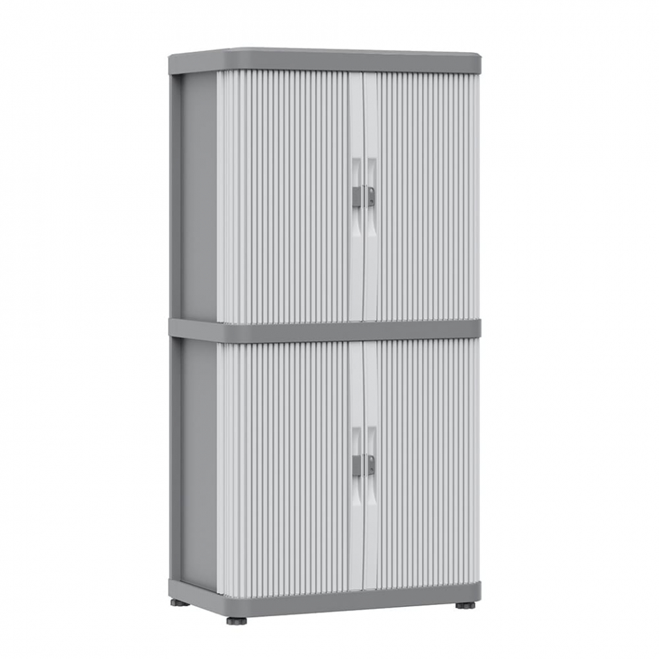 Armario rolling space modular 2 apto para interior y exterior. fabricado con material reciclado 90%. ip43. protección contra rayos uv. pies regulables en altura. resistencia de las estanterias entre 5 y 10kg. 2 baldas. interior modular. posibilidad de cierre por candado. puertas correderas. 115x59x36cm
