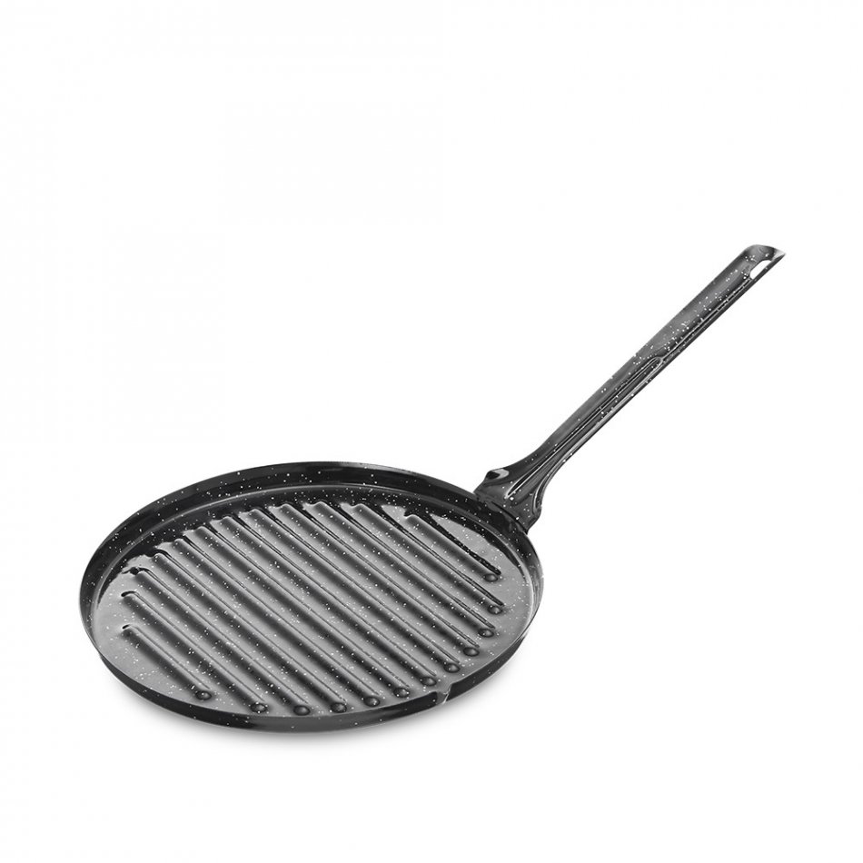 Asadora esmaltada redonda ø24cm. vaello. producto fabricado en acero laminado en frío y recubierto con una capa de esmalte antiácido. las asadoras de acero esmaltado se utilizan para asar todo tipo de carnes, pescados y verduras. apta para fuegos de llama. vaello