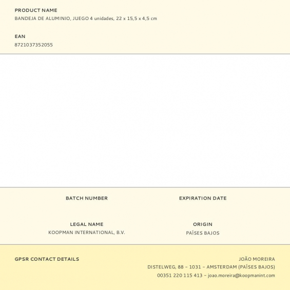 Bandeja de aluminio, juego 4 unidades, 22 x 15,5 x 4,5 cm