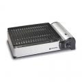 Barbacoa portátil para cartucho de butano con conexión de bayoneta, encendido piezoeléctrico, potencia regulable, parrilla de aluminio (27 x 34 cm) con revestimiento antiadherente, bandeja para la grasa extraible, con saco de transporte 1,9 kw, 138 g/h 45 x 32 x 9 cm