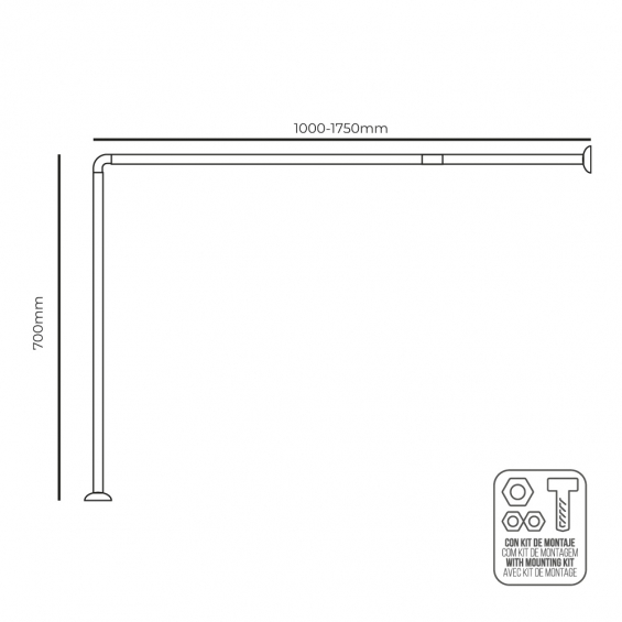 Barra de cortina curva blanca 70 x 100 a 175 cm
