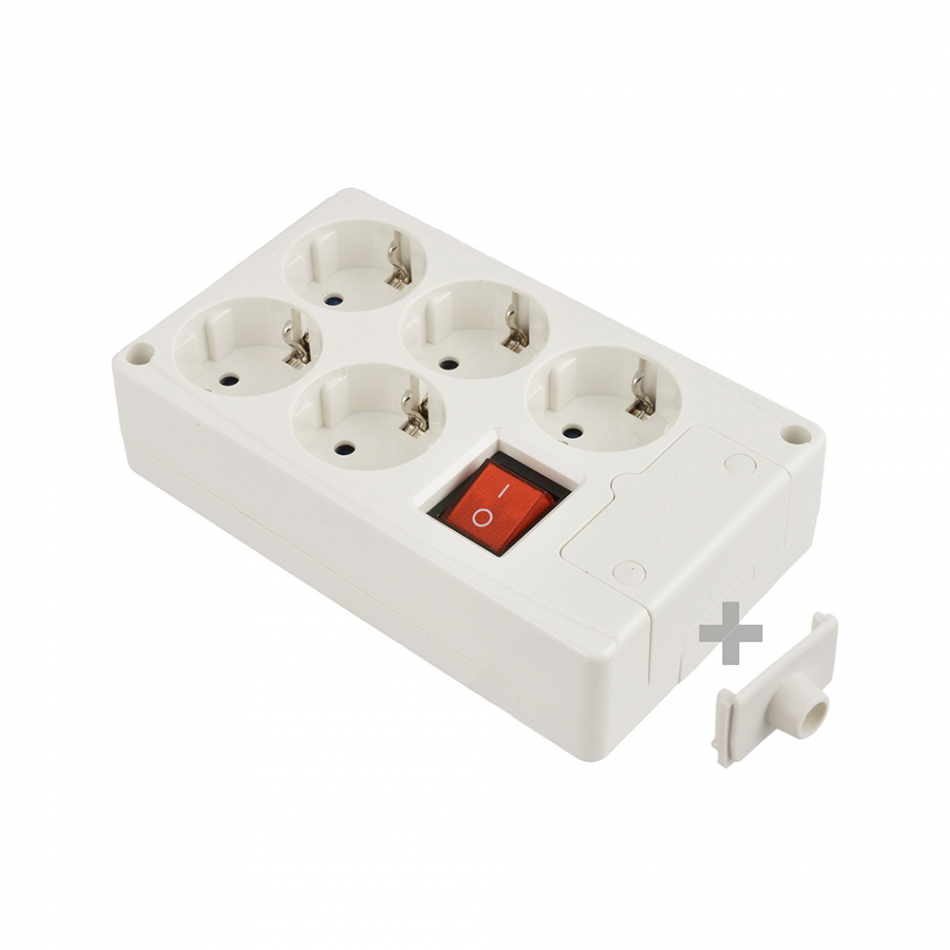 Base multiple 5 tomas schuko t/tl 10/16a 250v blanco + interruptor luminoso