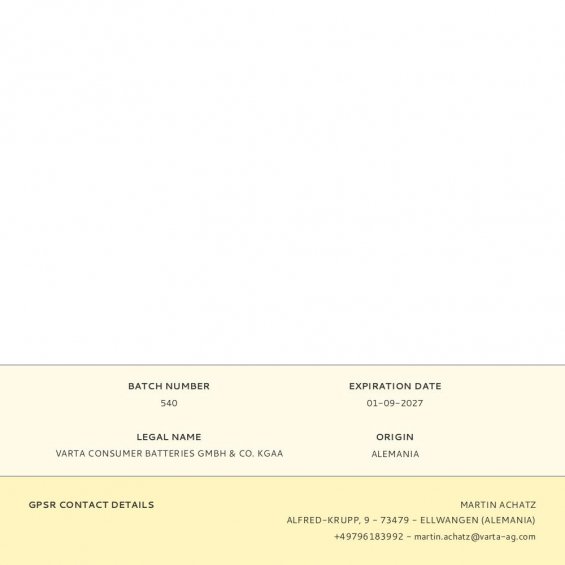 Fabricante:   Varta    P/N:      EAN:  4008496165629    Código:  361900
