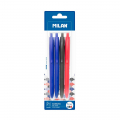 Blister con 4 boligrafos azul-negro-rojo milan. 4 boligrafos p1 touch (2 azules, 1 negro y 1 rojo) con el cuerpo del mismo color que la tinta. longitud de escritura aproximanda de 1.200m. punta 1mm. tinta fabricada en alemania. diseño original creado por el departamento de i+d de milan. ø1x14,1x1,7cm