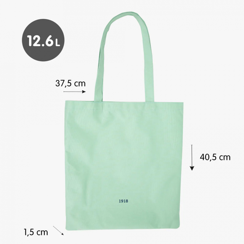 Bolsa de tela tote bag color verde. colección 430 since 1918, colores y diseño originales de las gomas de borrar milan, fabricadas en españa desde 1918. ideal para la compra, bolso o para llevar lo necesario para el día a día. tejido 'ripstop': ligero y resistente a la rotura y rasgaduras. composición polyester. medidas 0,5x38x41cm. largo asa 27cm. capacidad 12,6 litros.