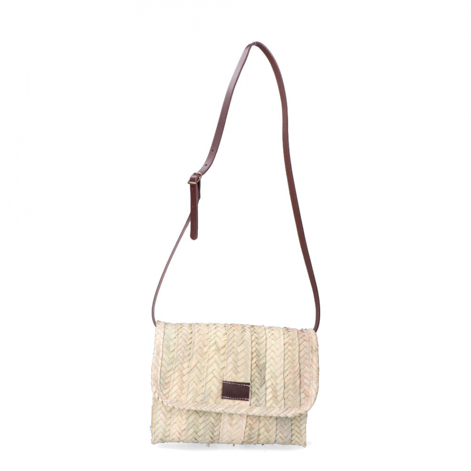 Bolso de palma lola con tapa y asa de piel .medidas:27x20cm