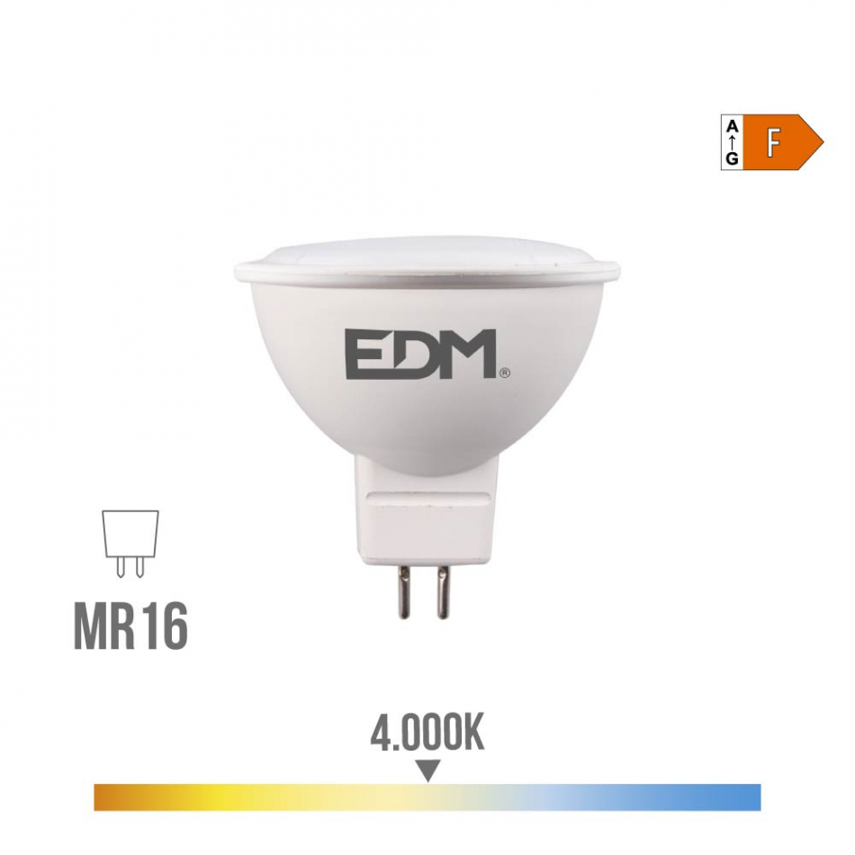 Bombilla dicroica led mr16 8 w 60 w 780 lm 4000 k luz dia. angulo de apertura: 120°. medida: ø5 x 5 cm. 25000 h 12 v ac dc clase energetica: f