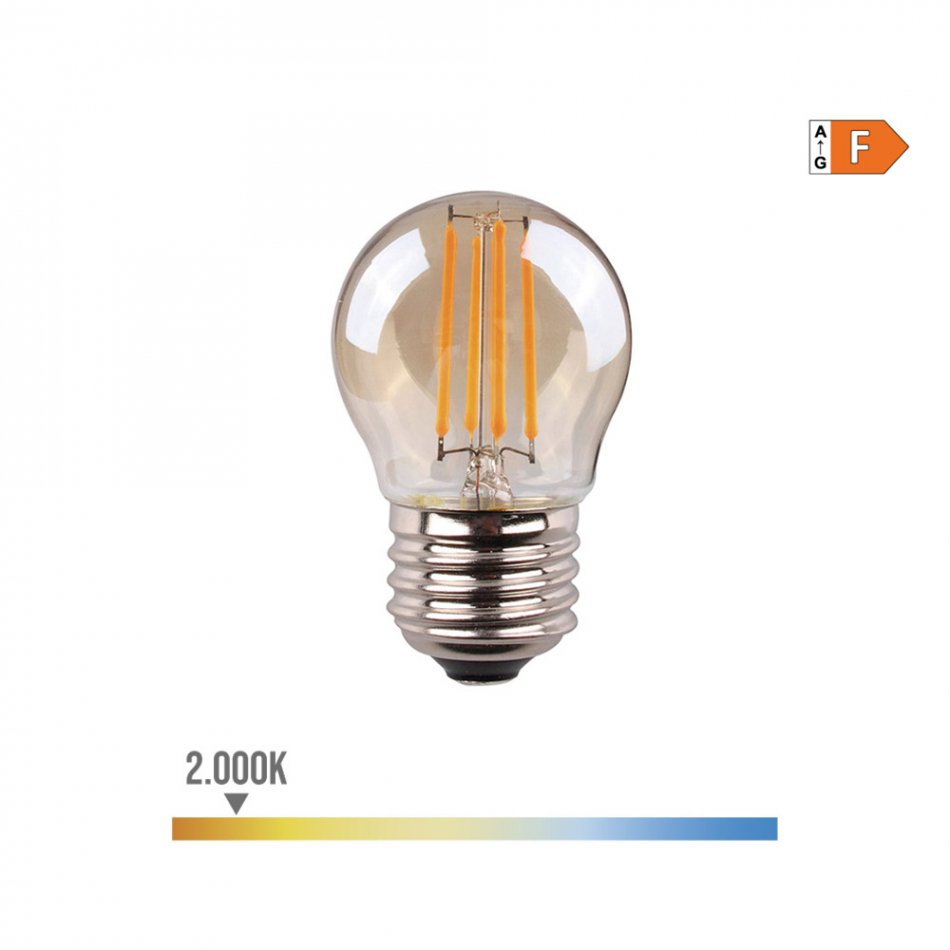 Bombilla esferica con filamento de led cristal vintage e27 4,5w 400lm 2000k luz calida medidas: ø4,5x7,8cm (diámetro/alto) 15000h ac 220-240v clase energetica: f angulo de apertura: 300° edm