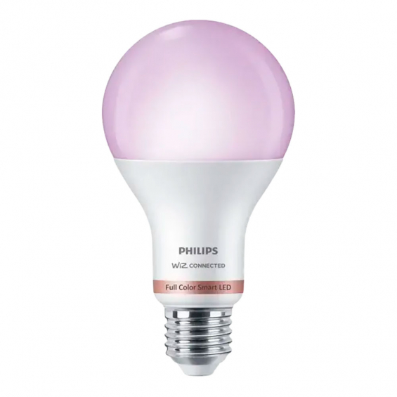 Bombilla led standard e27 13w full colors 1521lm wifi philips wiz. la bombilla a67 philips smart led ofrece luz con una amplia gama de colores y alta luminosidad para los accesorios estándar de tu hogar. esta bombilla se conecta a wiz. úsala con tu wifi para controlarla con la aplicación wiz o con tu propia voz.