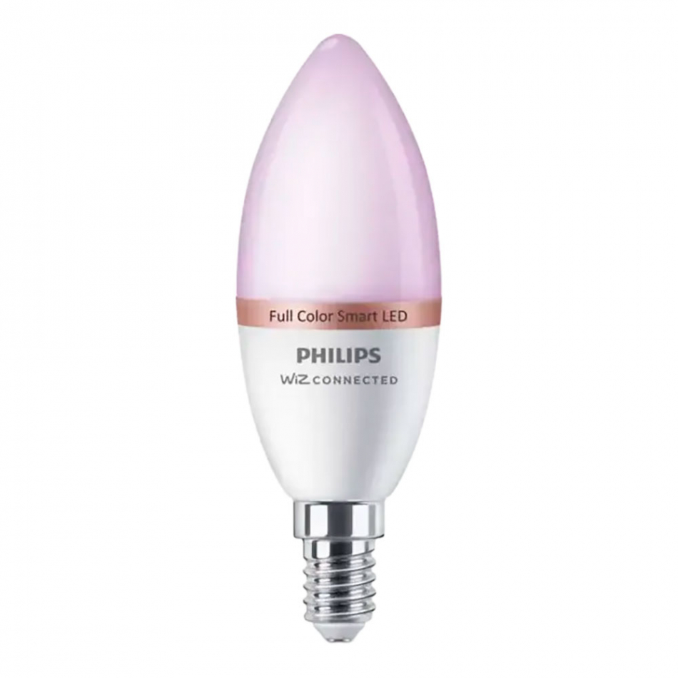 Bombilla led vela e14 4,9w full colors 470lm wifi philips wiz. agrega luz inteligente a tus accesorios candelabra con una bombilla de vela a todo color philips smart led con una base e14. esta bombilla se conecta a wiz. úsala con tu wifi para controlarla con la aplicación wiz o con tu propia voz.