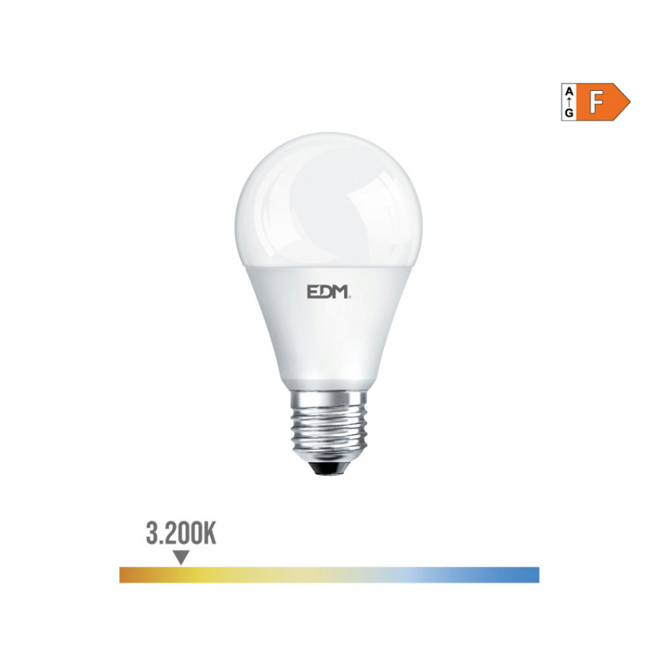 Bombilla standard led e27 10w 932lm 3200k luz calida. medida: ø6x10,8cm (diámetro/alto) 25000h ac 220-240v. clase energetica: f. angulo de apertura: 220° edm