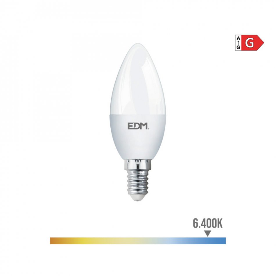 Bombilla vela led e14 5w 400lm 6400k luz fria ø3,5x10cm (diámetro/alto) 25000h ac 220-240v clase energetica: g. angulo de apertura: 200° edm