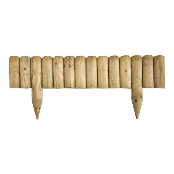 Bordura de madera vampiro fija con un largo de 98cm, alto de 30cm, con un ancho de tabla de 7cm y un radio de tabla de 3,5cm. con protección autoclave nivel 3 faura