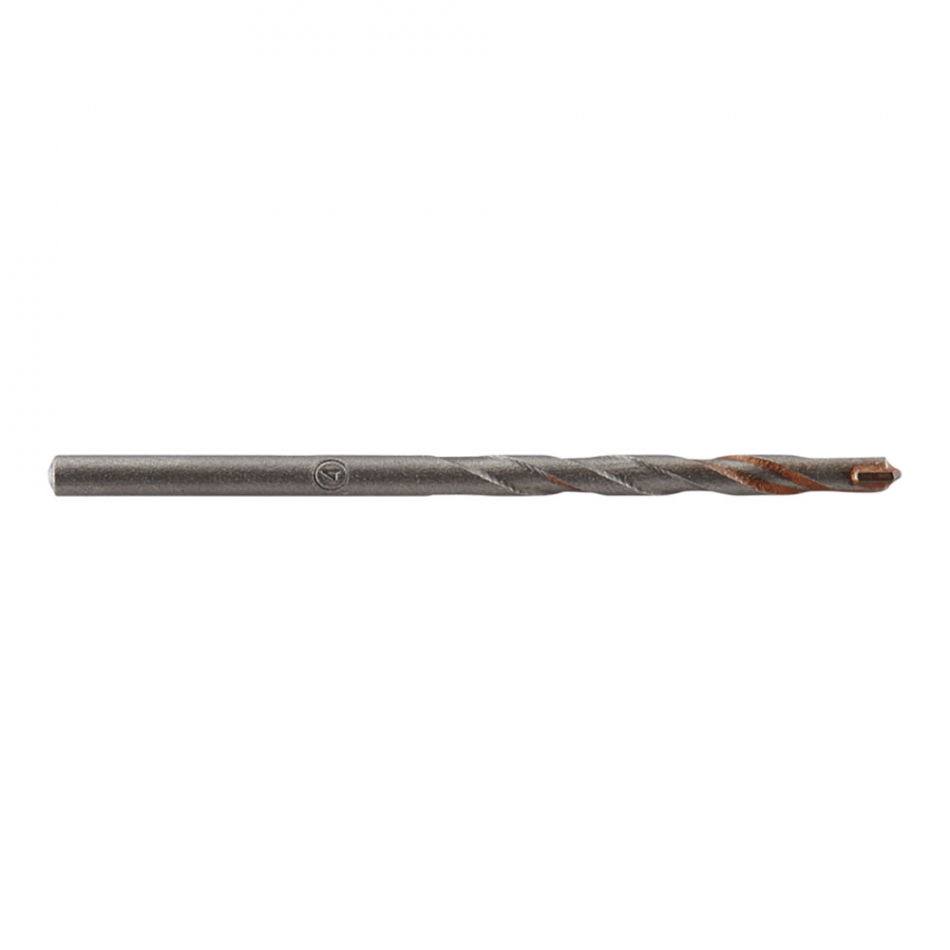 Broca para hormigón con filo de carburo de tungsteno ø4 x 75 mm longitud de trabajo 40 mm el ángulo de la punta de 130° facilita el posicionamiento de la broca y el progreso de taladrado placa de carburo de tungsteno con rectificado de precisión para un elevado rendimiento de taladrado en materiales duros buena evacuación de los restos de taladrado por su geometría especial en espiral