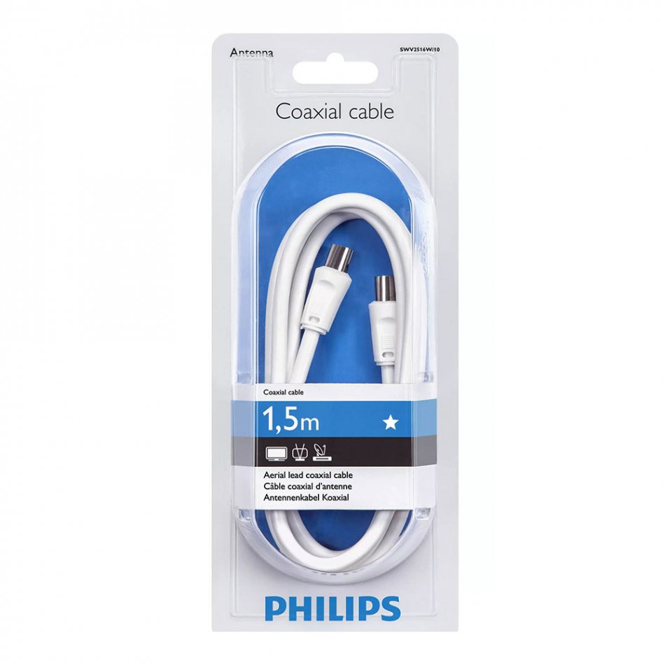Cable de antena tv coaxial tipo pal 1,5m swv2516w/10 philips