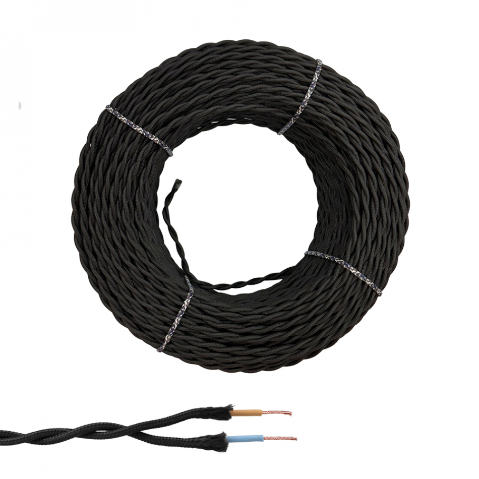 Cable paralelo textil trenzado h05vv-f 2 x 1,50 mm² negro euro/m