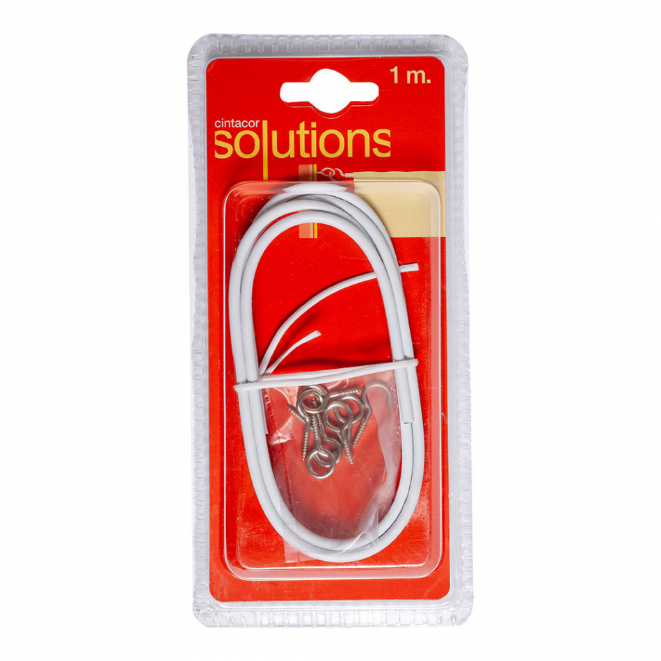 Cable plastificado blanco (gusanillo) 1m portavisillo pv024 cintacor - storplanet. 0.4cm ancho pvc, instalacion interior ventana. incluye alcayatas