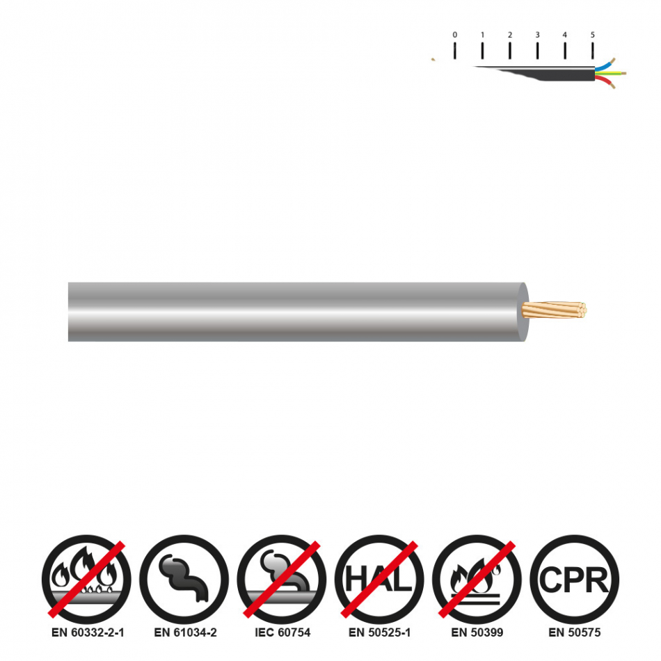 Cablecillo h07z1-k 6,00 mm² gris euro/m