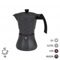 Cafetera de aluminio de 6 tazas. apta para gas, vitroceramica, placa electrica e induccion. fabricada segun normativa ue de productos en contacto directo con los alimentos