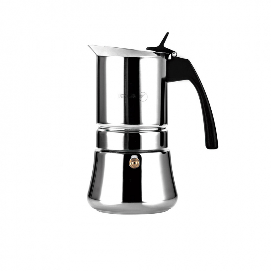 Cafetera etnica 4 tazas acero inoxidable 18/10. deposito de aleación aisi 430 y jarra aisi 304. acabado exterior pulido espejo. junta de silicona de gran durabilidad. mangos termoaislantes fabricados en nylon muy resistente. apto para todo tipo de fuegos. facil limpieza. no apta para lavavajillas.