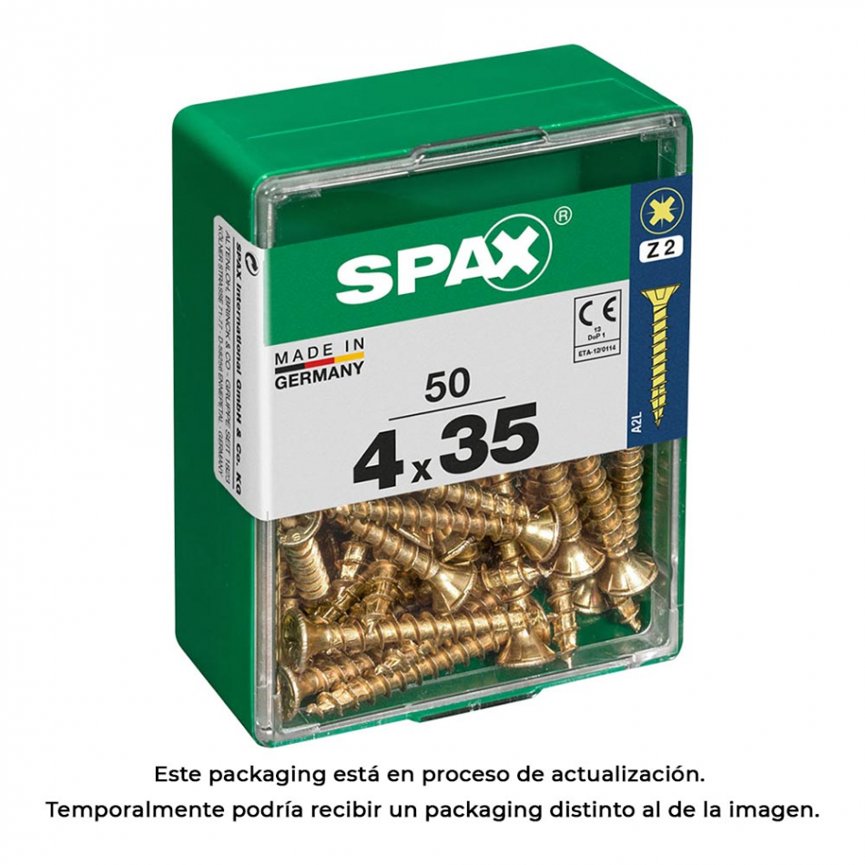Caja 50 unid. tornillo madera cabeza plana yellox 4,0x35mm spax