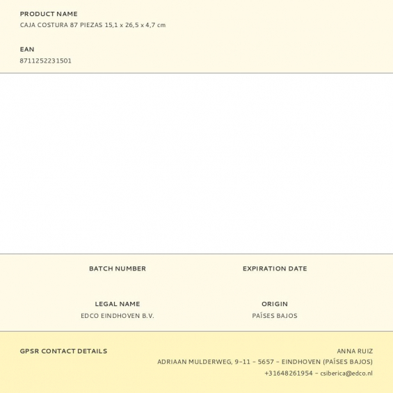 Caja costura 87 piezas 15,1 x 26,5 x 4,7 cm