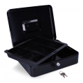 Caja de caudales cfc09. medida 300x240x90mm. incluye bandeja.dispone de asa para su facil transporte. material acero.acabado negro. (tornillos no incluidos)