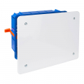 Caja de empalme para empotrar en tabiques huecos 194x154x50mm. caja para empalme y derivacion. para instalacion empotrada en tabiques huecos. fijacion mediante bridas. 8 entradas para tubos de ø25mm, 2 entradas para tubo de ø32mm y 6 entradas para tubo de ø40mm cierre de tapa con tornillos. tapa color blanco. solera (retractilado) 5314gw