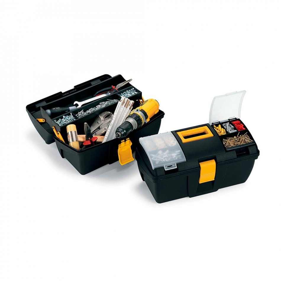 Caja porta herramientas con bandeja y organizador en la parte superior de la tapa 39,3x18,9x20cm