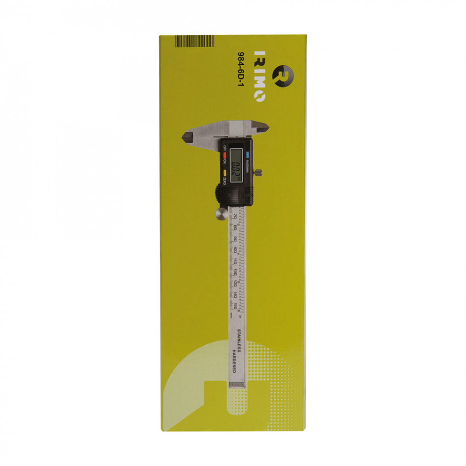 Calibre digital 984-6d-1. calibre vernier digital. precisión de ±0,03mm/m. fabricado con acero inoxidable templado. incluye tabla roscada. suministrado en caja de plástico para un almacenamiento seguro.