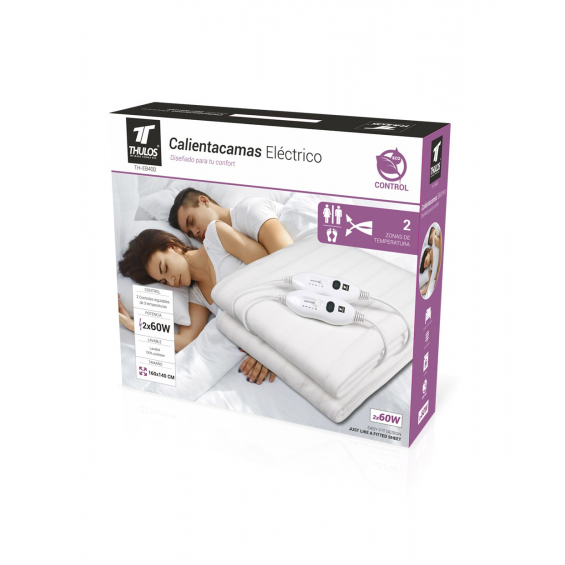 Calientacamas eléctrico 160*140 cm, lavable, 2 temperaturas, 2 controles regulables, 2*60W. THULOS TH-EB400