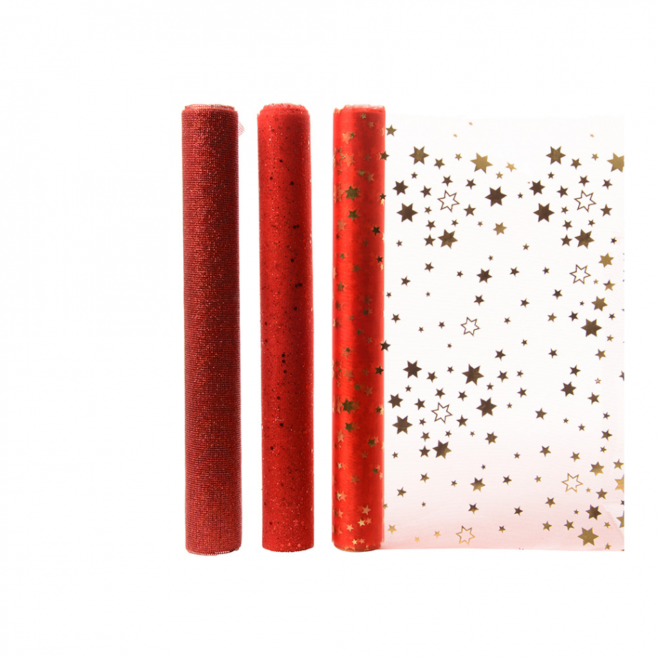 Camino de mesa de organza 3 modelos surtidos rojos 200x35cm